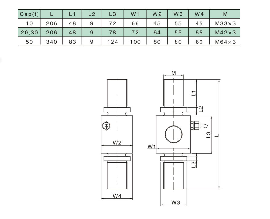 此系列稱重傳感器是用于吊鉤秤的專用傳感器,彈性體采用合金鋼材料制作,具有精度高,安裝方便,抗偏載能力強,抗沖擊性能好等優點,經過良好的防潮密封,適用各種吊秤適用。